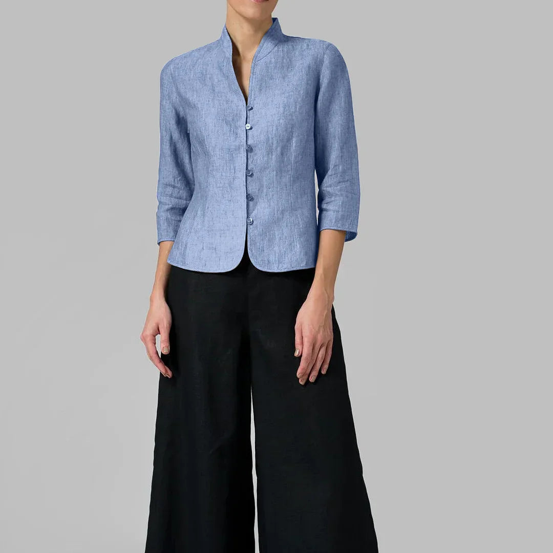 J'ai commandé cette blouse pour le travail. Elle est bien coupée, même si la couleur est légèrement plus claire que ce que je pensais. Sinon, je suis très satisfaite.